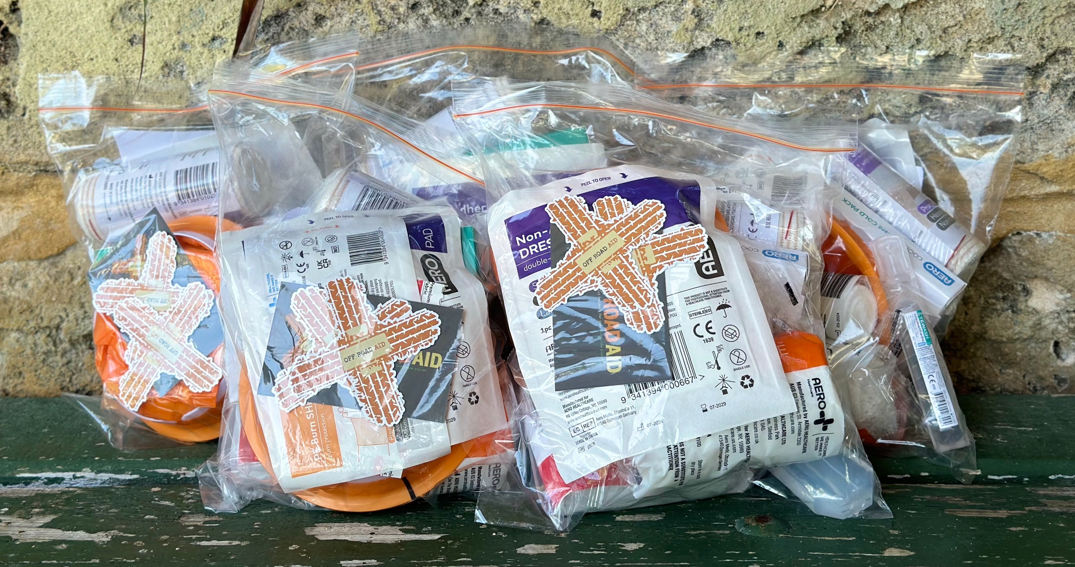 Water resistant die-cut sticker for drink bottles, first aid kits, books, boxes and anywhere you want to display the logo on your gear.